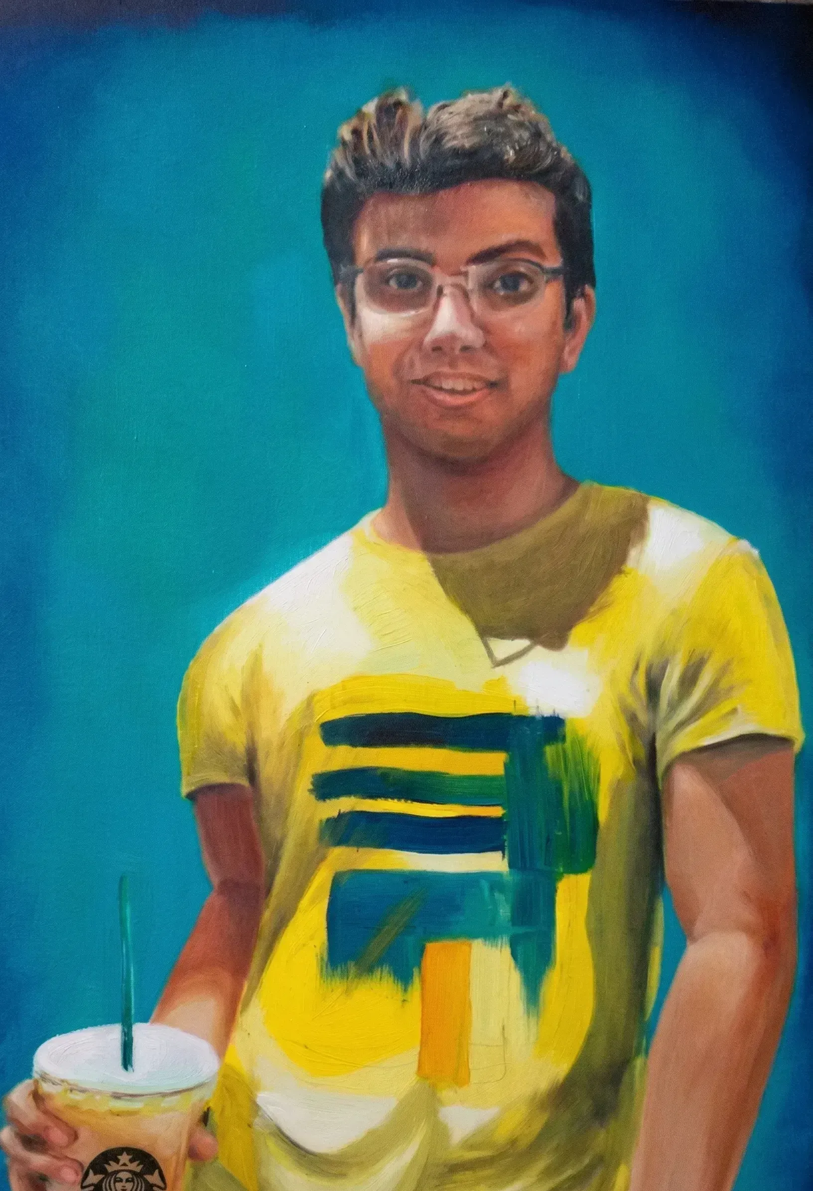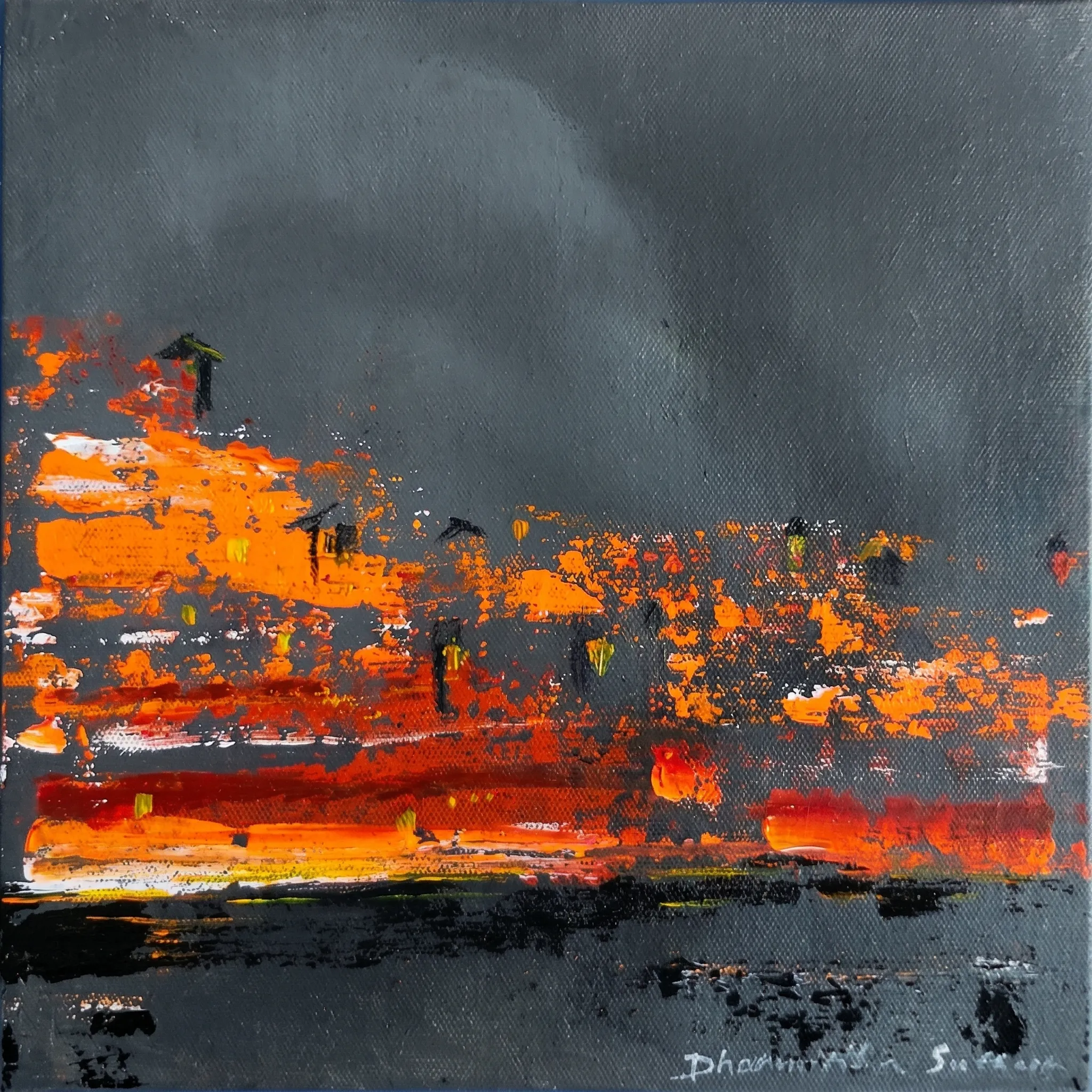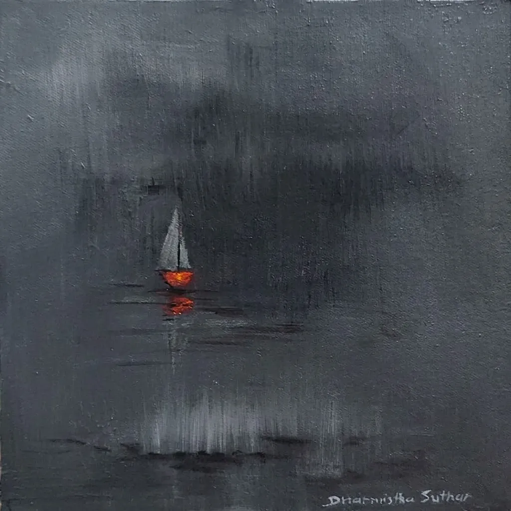 I paint because silence has a colour. Born in the warmth of Gujarat, rooted in the disciplines of Architecture, Interior Design, and Fine Arts, I grew up surrounded by the textures of everyday devotion — the orange of marigolds at a temple gate, the blue hour before the rains, the quiet dignity of faces weathered by sun and story.