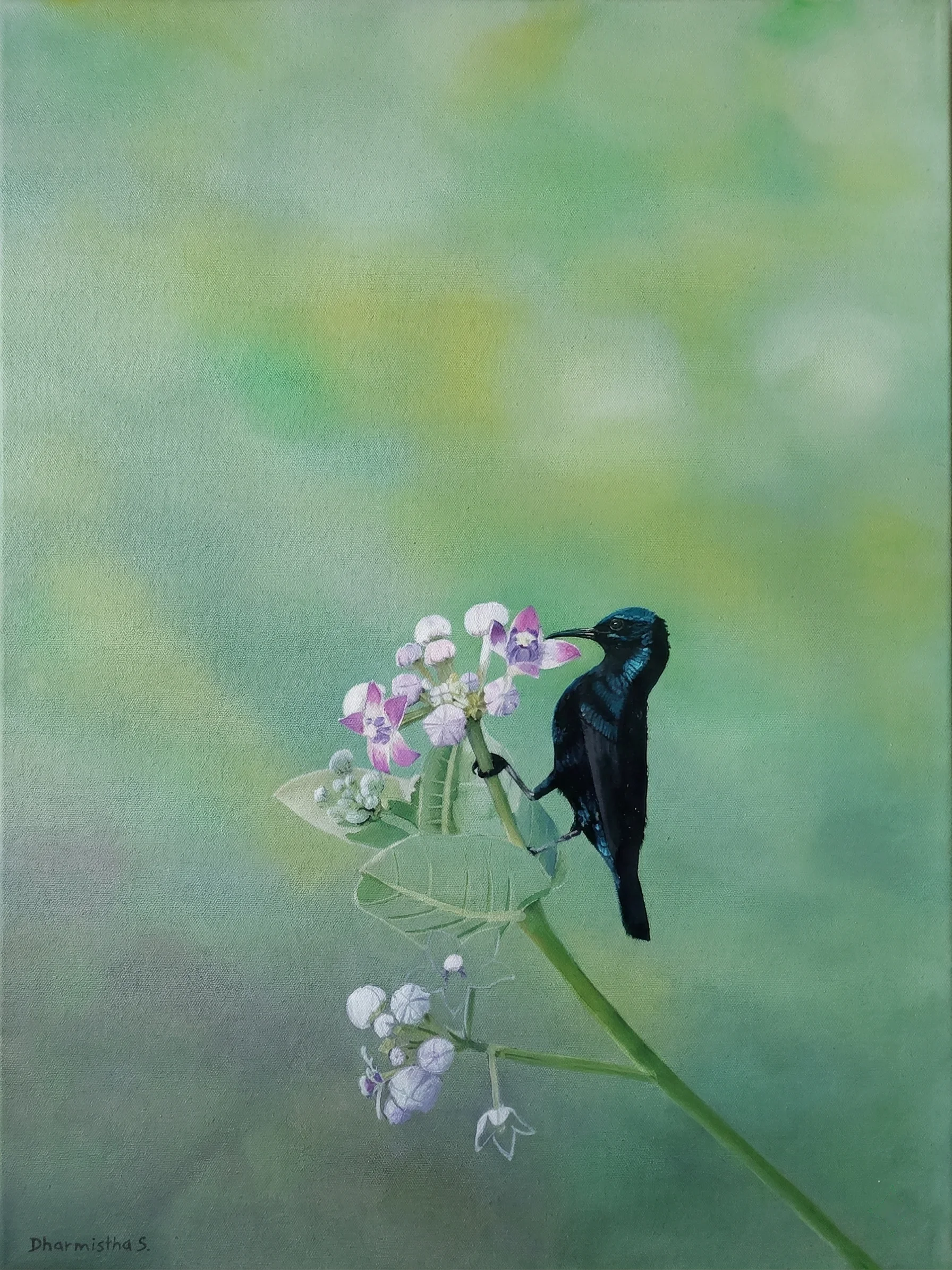 My work lives in the space between observation and feeling. I blend the precision of contemporary realism with the fluidity of watercolour, the depth of oil, the intimacy of thread and pencil — allowing emotion to seep through the edges of form, imprecise in all the right places. Nature, portraits, the rituals of Indian life — these are not subjects to me. They are language. And through them I hope to offer what all art ultimately offers: the quiet reassurance that someone else has felt exactly this.